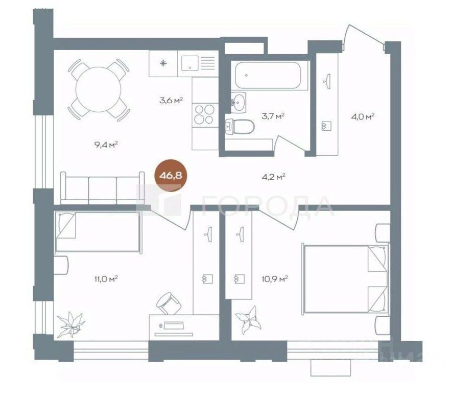 46 м² · Этаж 12 из 25