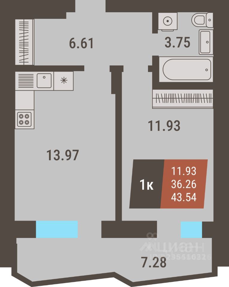 43 м² · Этаж 16 из 27