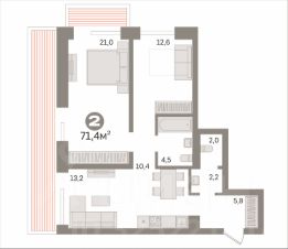 В продаже двухкомнатная квартира площадью 71,4 кв.м в микрорайоне ''Европейский берег'' Объект расположен в одной из Урбан-вилл входящий в архитектурный ансамбль из трёх таких зданий с единым двором на стилобате, подземным и отдельно стоящим паркингом. Урбан-виллы — новый формат жизни в городе. Это одноподъездный небольшой дом на 65 квартир. В одном из таких домов располагается соседский центр для проведения досуга, встреч и работы.В стоимость квартиры входят: кухонный гарнитур, духовой шкаф, варочная панель, вытяжка, шкаф в коридоре, стол на кухне и стулья, люстры, зеркала в санузлах, шкаф в комнате, кровать, а так же 2 дивана.. Комнаты все изолированные. Чистая продажа, объект без обременений и долей. Один взрослый собственник. Никто не прописан.