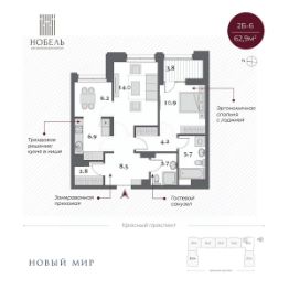 Дом сдан, приглашаем на экскурсию!''Нобель'' на Красном проспекте в 2025 году стал победителем в номинации Жилая недвижимость. Бизнес-класс. Регионы (Urban Awards 2025), в 2024 признан Самым инвестиционно-привлекательным проектом УФО+СФО+ДФО (Urban Awards 2024).Дом ''Нобель'' в Новосибирске спроектирован компанией ''Новый мир'' совместно с международной командой архитекторов из Великобритании, Италии и Сербии. Уникальность проекта, в том, что при строительстве здания в центральной локации города удалось сохранить более 200 деревьев ценных хвойных пород на территории комплекса. При этом в продукте было сформировано более 50 вариантов функциональных планировочных решений. И все это в великолепной архитектурной форме в стиле ар-деко. Общая площадь территории 2 гектара! Именно это позволило специалистам компании ''Новый мир'' спроектировать уникальный двор-парк с фонтаном и колоннадой.АрхитектураОдин из принципов нашей компании: сохранять все лучшее в каждой локации. Архитектурное окружение дома ''Нобель'' представлено сталинской неоклассикой, именно поэтому специалисты компании ''Новый мир'' выбрали стиль ар-деко, который называют наследником неоклассицизма и модернизма. ''Нобель'' — это архитектура, устремленная вверх. 5 башен с величественными шпилями, благородный фасад из натурального гранита, увеличенная площадь остекления с применением архитектурного стекла. И — чего не встретишь в других проектах, — роскошная гранитная прогулочная колоннада — второй уровень благоустройства.ДворЛандшафтный дизайн стилистически продолжает архитектурный замысел ар-деко: строгая закономерность, смелые линии, геометрические узоры, отсутствие ярких оттенков. Пространство двора-парка разделено на две части. Они отделены друг от друга колоннадой, по которой можно прогуливаться на высоте 10 метров и любоваться Красным проспектом. Зоны отдыха, игровые площадки, беседки соединены дорожками и создают один из узнаваемых узоров европейского стиля. Хвойные гиганты и фонтан добавляют особый шик.ХоллыСемь парадных холлов дома ''Нобель'' облицованы широкоформатным итальянским керамогранитом. Мягкий свет, парящие потолки, дизайнерские люстры, бесшумные скоростные лифты, — каждый элемент создает атмосферу дорогого уюта и респектабельности. В доме предусмотрен консьерж-сервис для удобства жителей и гостей.Отделка White BoxКвартиры дома Нобель сдаются в предчистовой отделке white box. Она сделана с той же тщательностью и вниманием к малейшим деталям, как и все другие работы по проекту. Квартиры полностью готовы к чистовой отделке.