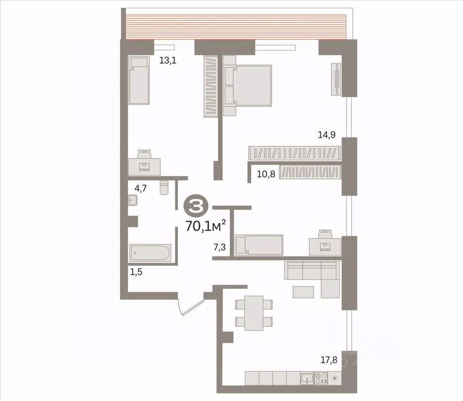 Трехкомнатная квартира площадью 70,1 кв.м.Функциональная трехкомнатная квартира с застекленной лоджией и просторной кухней.Ремонт выполнен в светлых тонах. В стоимость квартиры входит: кухонный гарнитур, варочная поверхность, духовой шкаф, вытяжка, посудомоечная машина на кухне, встроенный шкаф в ванной комнате, встроенный шкаф в коридоре.Дом 2018г. постройки.Монолитно-кирпичный.Удобная транспортная развязка, остановка в 3 минутах ходьбы.Чистая продажа.Быстрый выход на сделку.