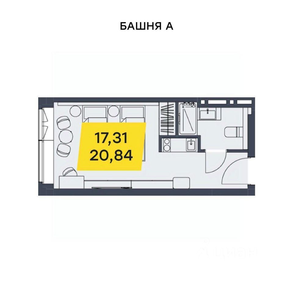 20 м² · Этаж 16 из 29