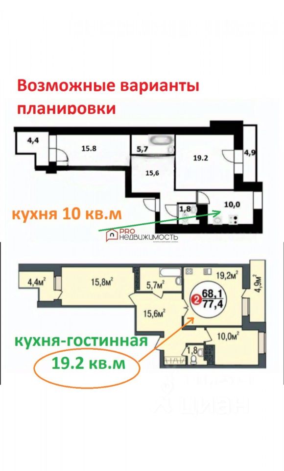 77 м² · Этаж 18 из 19