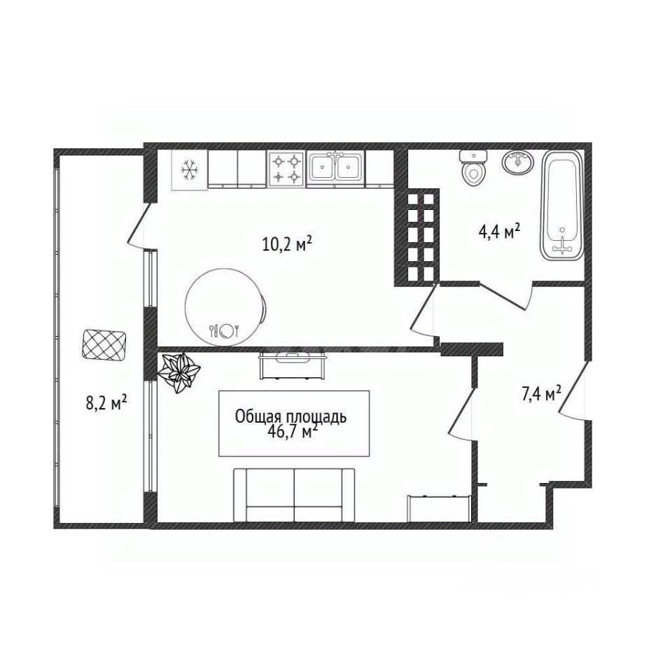46 м² · Этаж 14 из 24