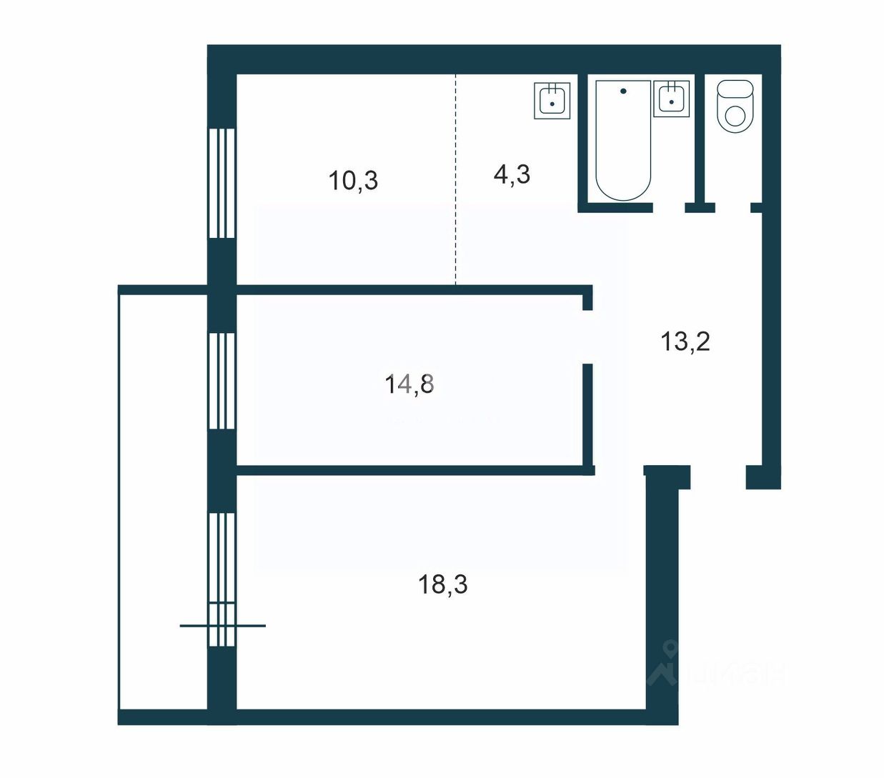 58 м² · Этаж 13 из 17