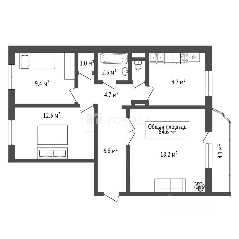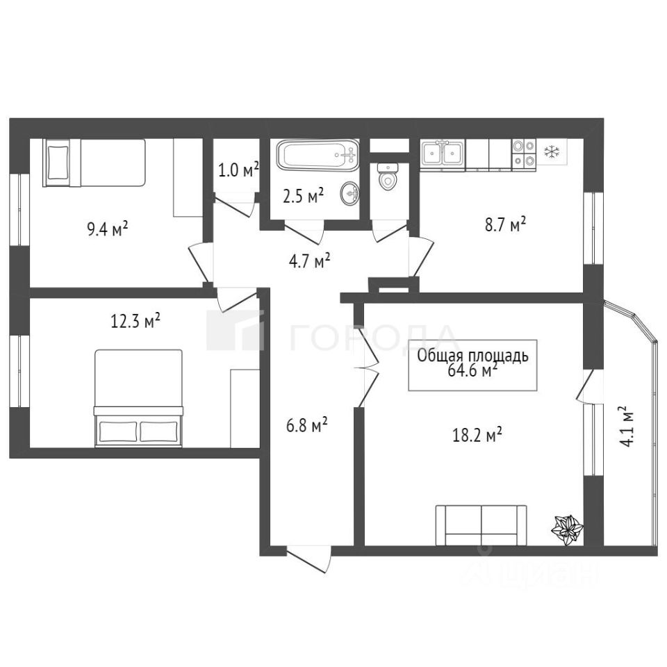 64 м² · Этаж 4 из 10