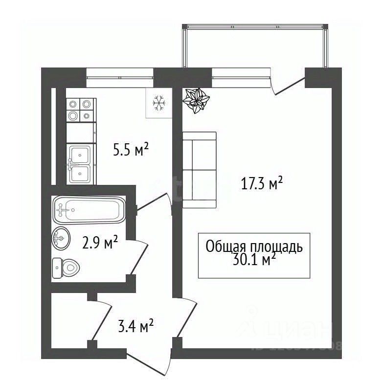 34 м² · Этаж 9 из 9