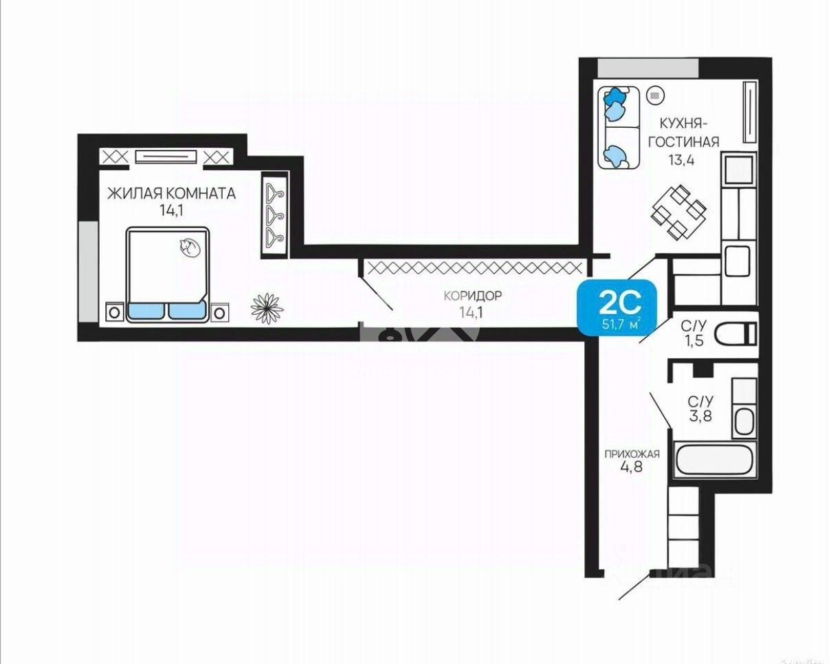 48 м² · Этаж 2 из 14