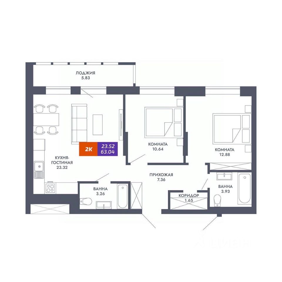 63 м² · Этаж 24 из 25