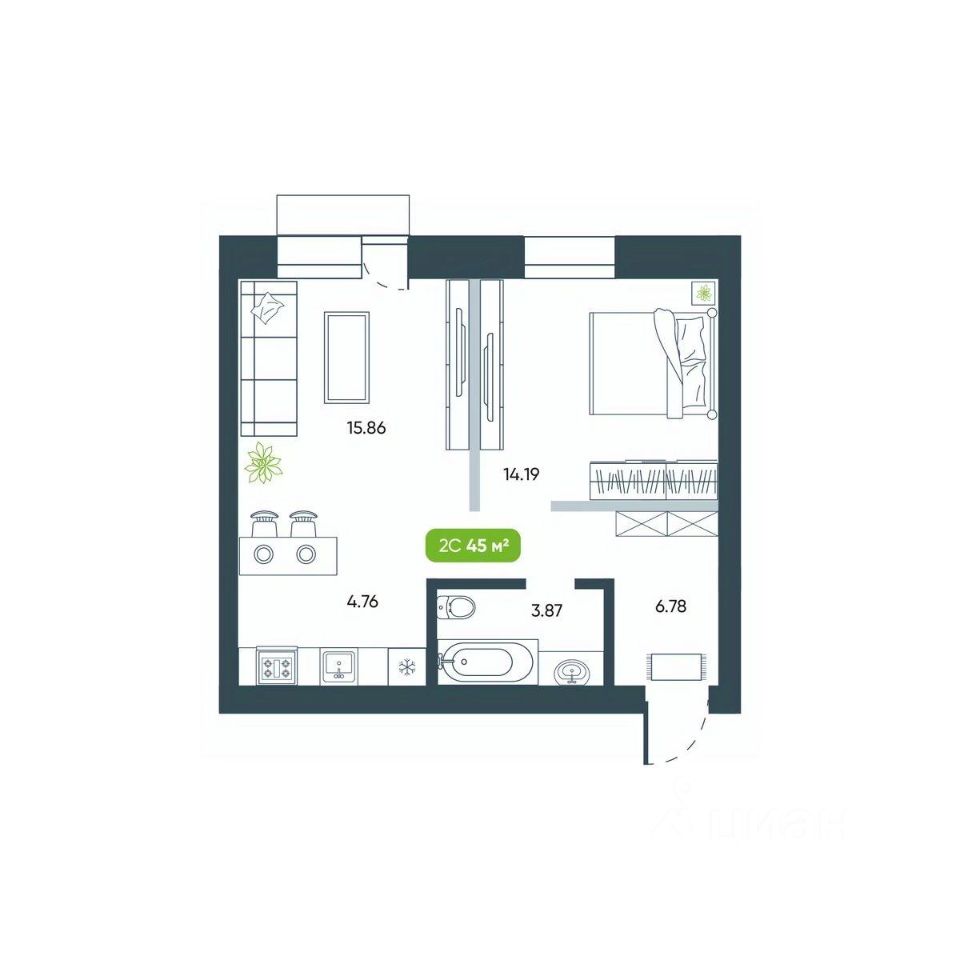 45 м² · Этаж 2 из 4