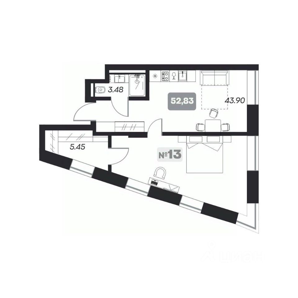 52 м² · Этаж 7 из 22