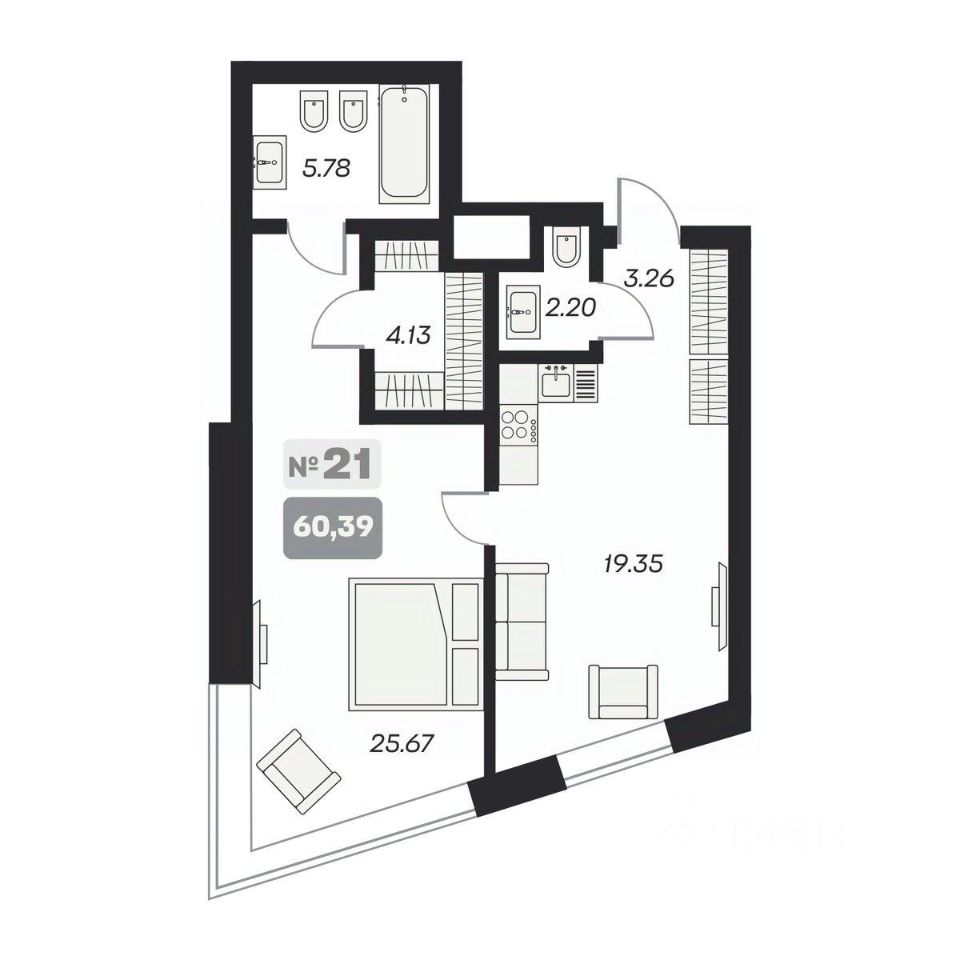 60 м² · Этаж 12 из 15