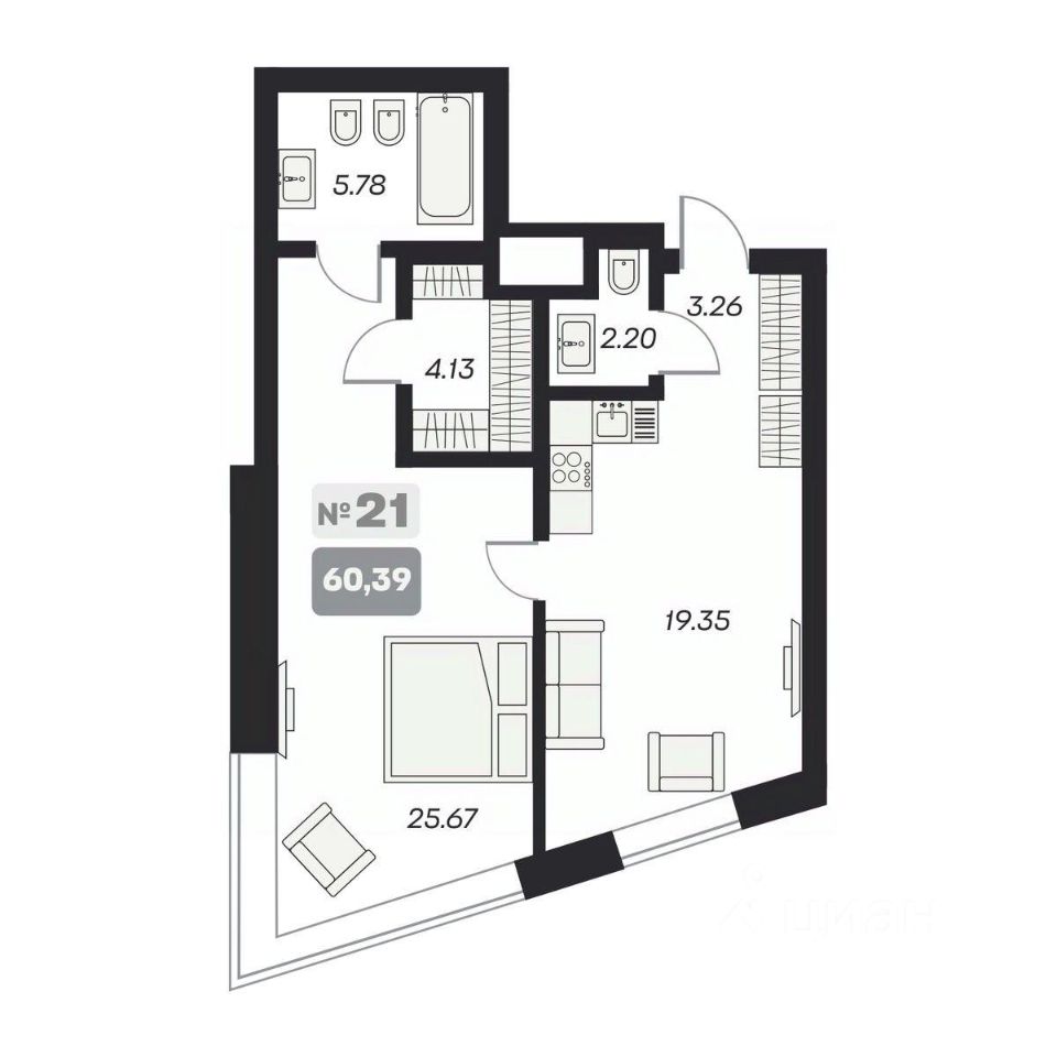 60 м² · Этаж 10 из 15