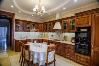 Общая площадь квартиры 140 кв.м. (95 кв.м - комнаты, 45 кв.м.- терраса и балконы)Планировочное решение: квартира подходит для большой семьи: гостиная, отдельная кухня, спальня, детская, кабинет и два санузла. Два балкона и открытая терраса с возможностью размещения зоны отдыха с газовым грилем.В стоимость квартиры входит подземная парковка на -2 этаже на два машиноместа 36 кв.м., парковка расположена рядом с лифтом.Квартира на 17 этаже, на этаже 3 квартиры, этаж закрывается на ключ, нет прямого доступа посторонних людей к квартире. Интерьер выполнен из дорогих, премиальных материалов, идеальная геометрия стен и стыковка материалов.В коридорах и гостиной на стенах итальянские обои missoni home в сложном серо-зеленом оттенке. Спальня выполнена в глубоких синих оттенках с акцентной стеной за изголовьем кровати. Потолочный светильник - Италия, сделан из металлизированной сетки в золотом оттенке.На кухне стены покрашены краской Lanors Mons в матовом серо-зеленом оттенке. Кухонная мебель сделана из качественных дорогих материалов: нижние антивандальные фасады - панели Cleaf, верхние фасады с классической фрезеровкой окрашены в тон стен. Акцент - столешница и фигурный фартук из натурального бразильского кварцита. Мойка, смеситель, фильтр для воды и измельчитель - Omoikiri. Встраиваемая техника Kuppersberg. Светильник - винтаж.Санузел с душевой - пол керамогранит под черный мрамор, стена в душевой плитка мелкого формата в красивом глубоком сине-зеленом оттенке. Раковина из итальянского мрамора Rosso Levanto, смесители Kludi, унитаз безободковый Roca. Основные стены - краска Lanors. Теплый пол.В коридоре большой и вместительный шкаф для верхней одежды и обуви, в последней секции организован хоз.блок, выводы под стиральную и сушильную машину, розетки для зарядки пылесоса, установлен водонагреватель.Кабинет - стены обои Rusch, акцентный потолок - зачищенный бетон с открытой проводкой и освещением. Выход на террасу осуществляется через кабинет, установлено панорамное остекление с трехкамерным профилем. Теплый пол. На террасе сделан новый слой гидроизоляции, уложен террасный паркет. Имеется слив для воды, дождевая вода и тающий снег не вызывают никаких проблем.Детская - стены в бумажных обоях Aura Kids, белые с цветным горохом - нейтральные, служат хорошим фоном для яркого проявления личности ребенка.Санузел с ванной - пол и облицовка ванны керамогранит под белый мрамор, подвесная рельефная тумба с раковиной выполнена из натурального ясеня. Смесители Kludi и Hansgrohe. Унитаз безободковый Roca. Теплый пол. В квартире установлено два кондиционера и два очистителя воздуха Tion.Потолки во всех помещениях натяжные, установлен функциональный свет, по всему периметру потолка сделаны высокие классические потолочные карнизы, по полу - окрашенный плинтус из дюрополимера Orac Decor. Двери - Волховец, матовая молочно-белая эмаль. Подоконники во всей квартире натуральный итальянский мрамор.