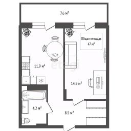 1-к, Серафимовича, 22 Показать на карте