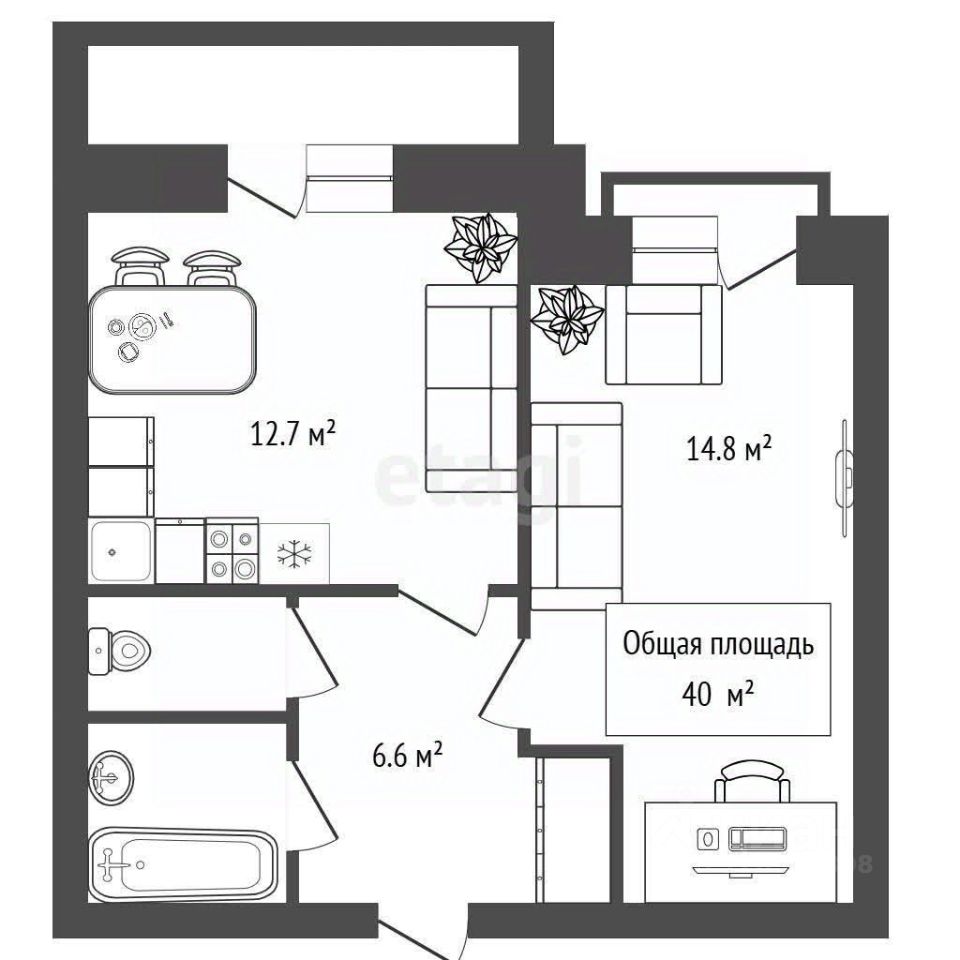 40 м² · Этаж 4 из 4