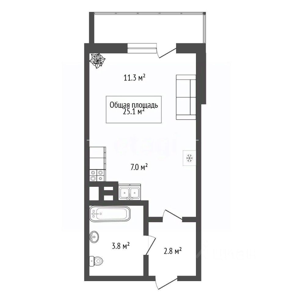25 м² · Этаж 8 из 24