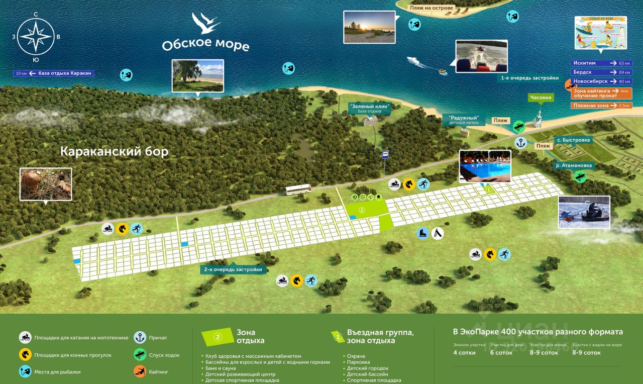 Продаётся участок в курортном посёлке ''ЭКОПАРК''. Ориентир - с. Быстровка (Искитимский район). ОБСКОЕ МОРЕ! КАРАКАНСКИЙ БОР!! ФИЛИАЛ РАЯ на СИБИРСКОЙ ЗЕМЛЕ!!! Возможна ПОКУПКА в РАССРОЧКУ! Площадь участка 8,7 соток, подведены вода и электричество(15 Квт). Планируется проведение газа. Из преимуществ КП''ЭКОПАРК'': Зона отдыха с теплым бассейном и детской игровой площадкой. Спуск для лодок и активного отдыха. Широкие дороги со щебеночным покрытием. Уличное освещение. Пункт охраны... Идеально для круглогодичного проживания в тихом , красивом месте на берегу моря! Возможен обмен на вашу недвижимость. Возможна продажа в рассрочку. Комплексная услуга для покупателя с полной финансовой ответственностью агентства При звонке, пожалуйста, сообщите номер варианта - JV008054194556 Дополнительно оплачивается комиссия с покупателя. Пожалуйста, дождитесь ответа специалиста при звонке. Время дозвона до владельца объявления увеличено из-за использования подменных номеров на сайте Циан.