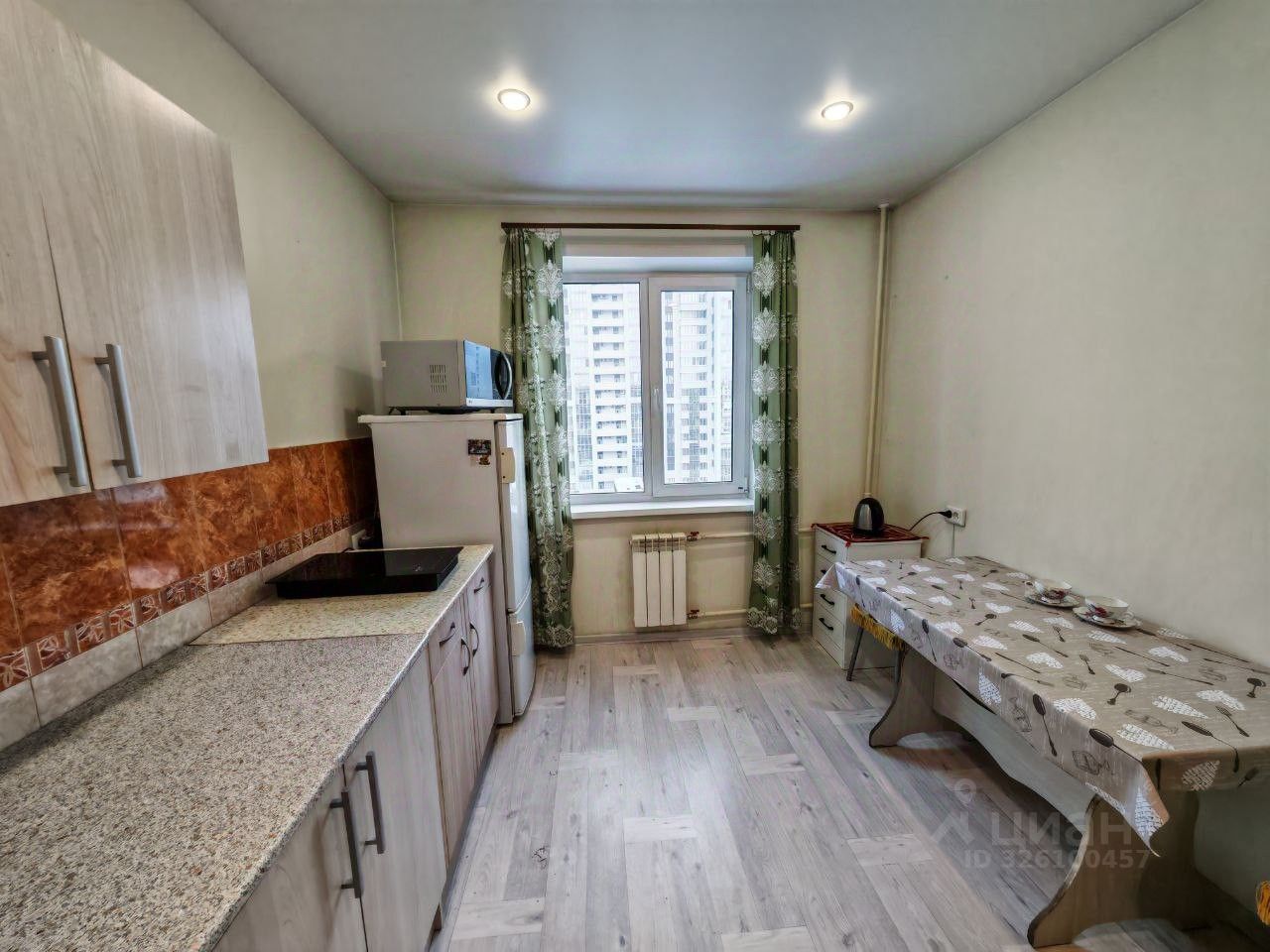 Однокомнатная квартира в отличном состоянии. Новый раскладной диван, телевизор, посудомоечная машина, холодильник, духовка, микроволновая печь, индукционная плита, вытяжка, чайник электрический, стиральная машина, утюг, гладилка, видео-домофон. Во дворе детская площадка, фонтан. Арт. 128979161