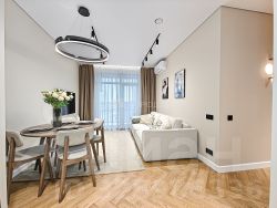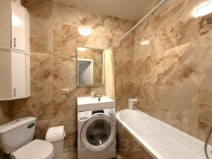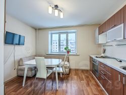 Уютная квартира на длительный срок. В квартире выполнен евро ремонт, что создает атмосферу комфорта и уюта. Просторная жилая комната площадью 17 м² позволяет разместить до трех спальных мест. Кухня компактная, но функциональная — 6 м². Дом панельного типа построен в 1977 году, оснащен пассажирским лифтом. В подъезде предусмотрена открытая парковка во дворе, где также расположена спортивная площадка. Квартира находится на 7 этаже из 9, что обеспечивает хороший вид из окон. Из дополнительных удобств есть гардеробная. В санузле совмещенная ванная комната с современной сантехникой.