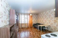 Арт. 115329019 Сдам большую студию 35 кв.м. В квартире выполнен косметический ремонт, оборудована всей необходимой мебелью ( большой вместительный шкаф, двуспальная кровать, кухонный гарнитур, обеденный и письменный стол, прихожая) а также техника ( холодильник, стиральная машина, чайник, плита)- все для комфортного проживания. Квартира отлично подойдет для проживания семейной пары или одного человека, возможно студента. Показ в день звонка. Звоните!