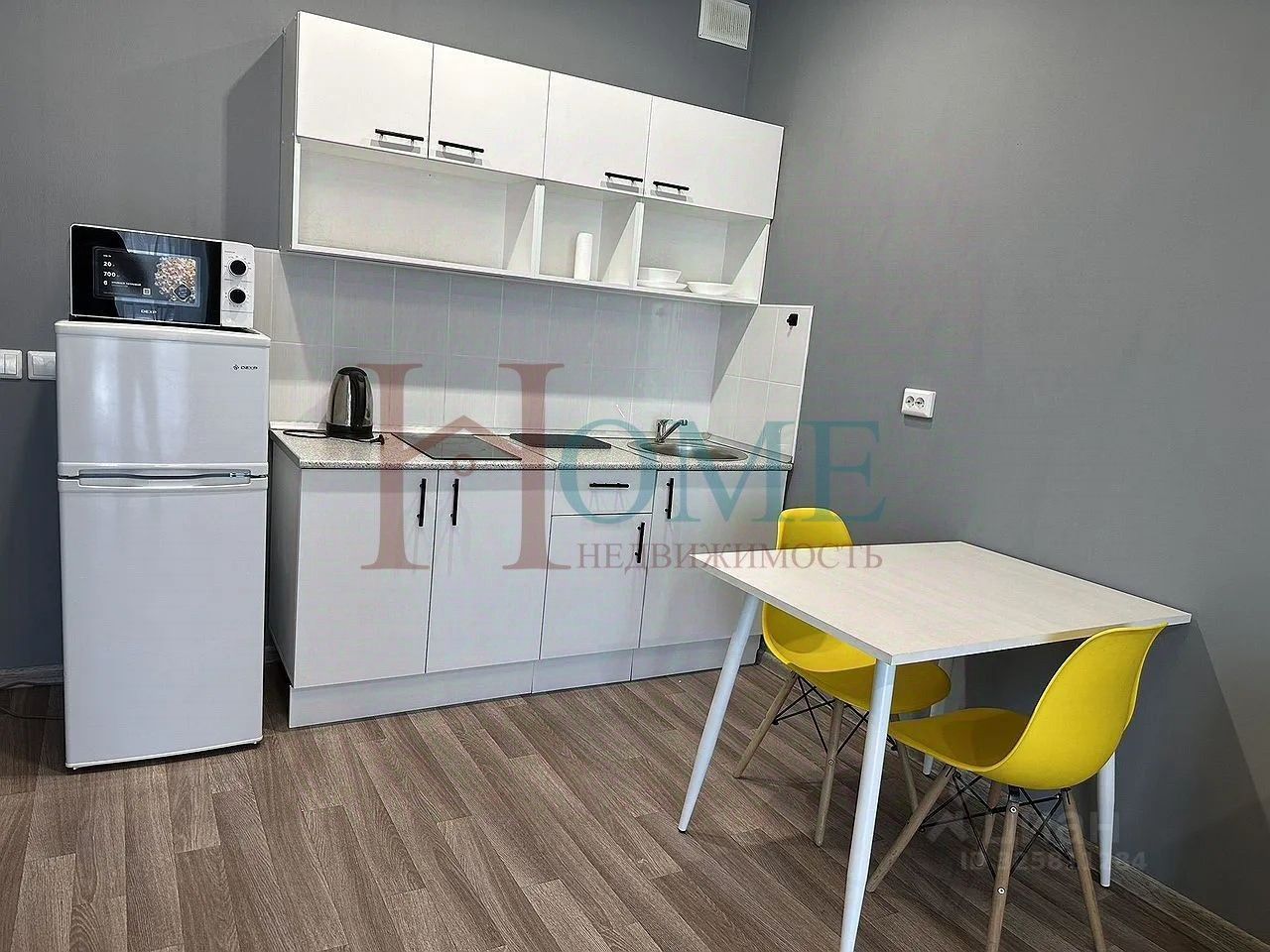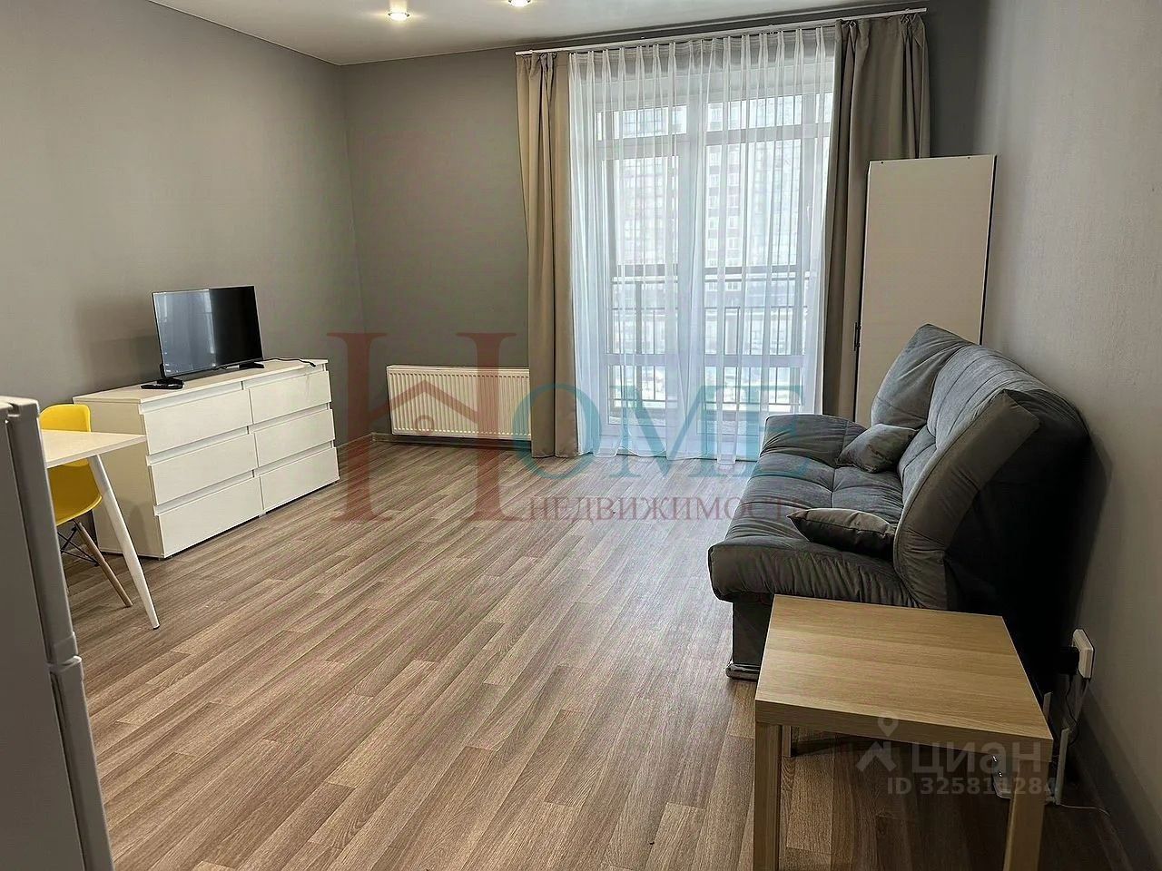 Уютная студия с мебелью и бытовой техникой. В пешей доступности магазины, остановка, детский сад и школа.