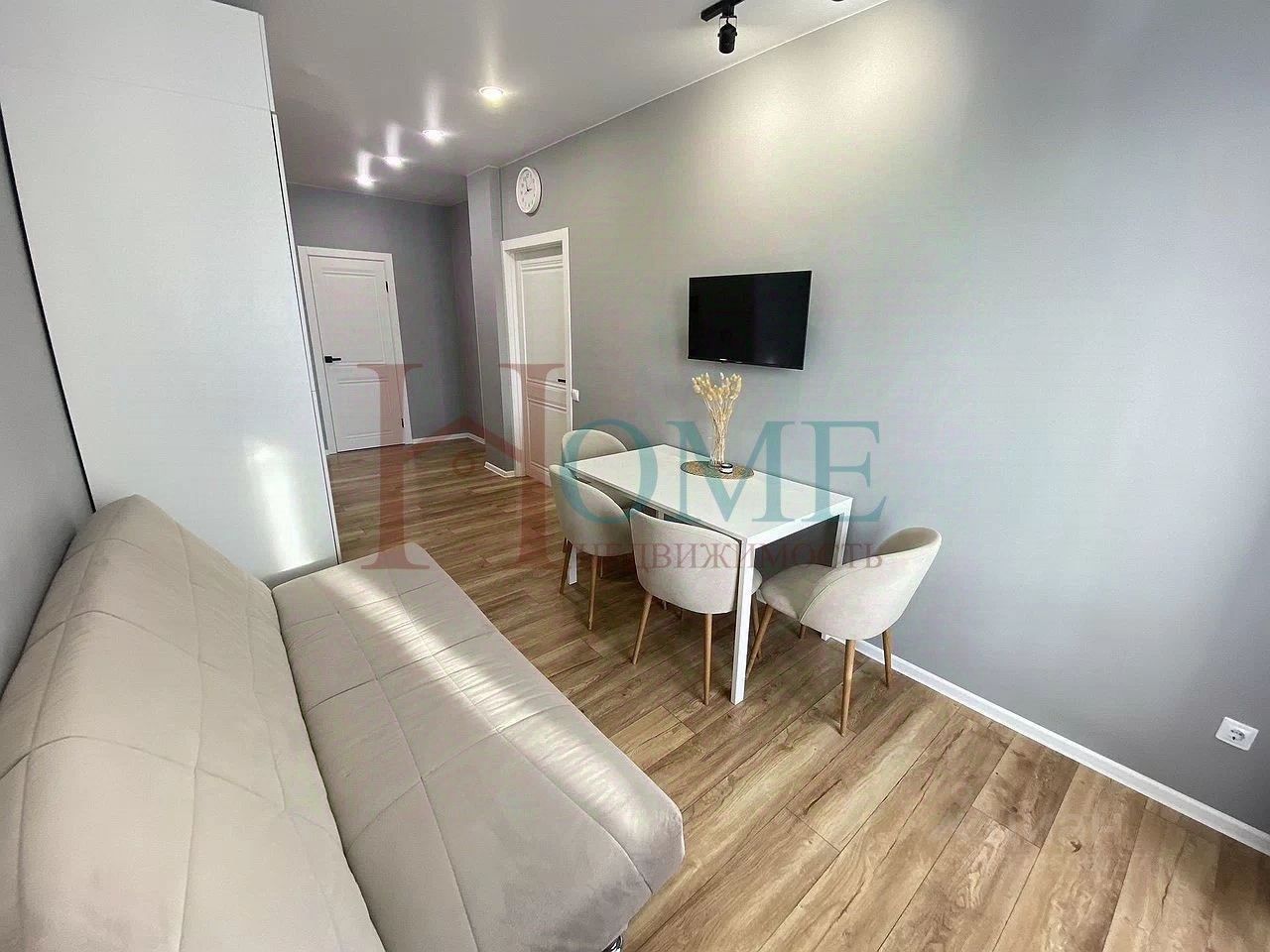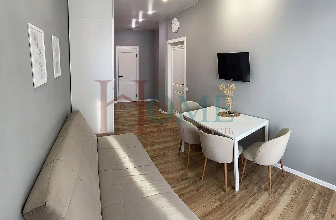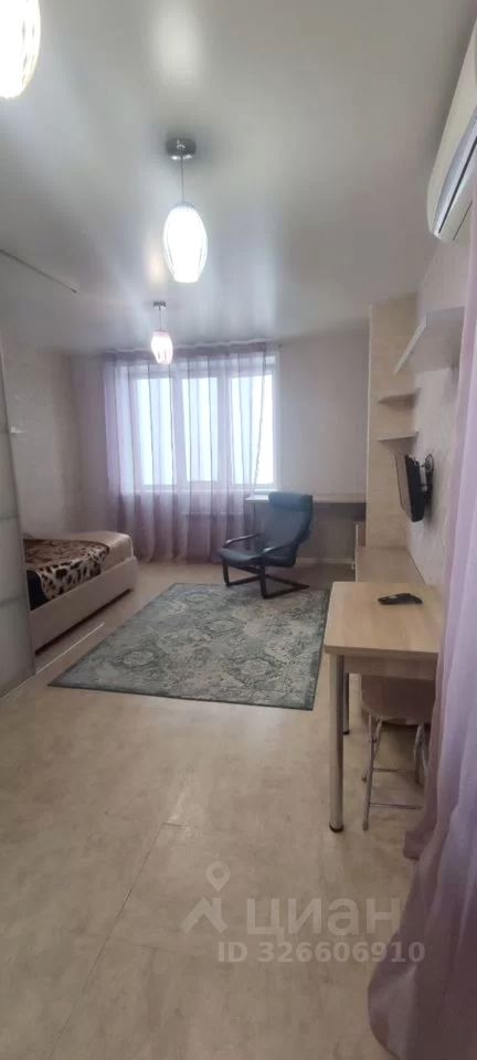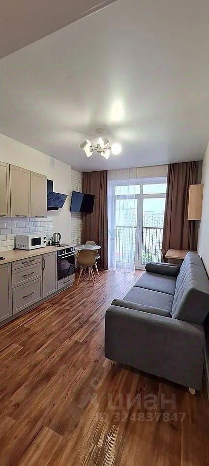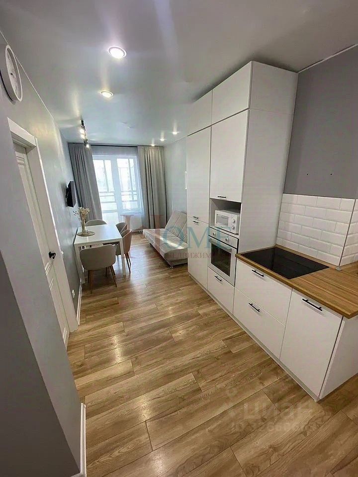 Светлая однокомнатная студия с аккуратной планировкой и спокойным интерьером в нейтральных оттенках. Пространство организовано функционально и визуально разделено на зоны, что создаёт ощущение порядка и комфорта. За счёт светлой отделки и освещения квартира выглядит просторной и ухоженной. Жилая зона выделена раздвижной перегородкой, что позволяет отделить спальное место от общей части комнаты. Установлена кровать, есть зона отдыха и место под рабочий стол. Комната наполнена естественным светом, окна выходят на сторону с хорошей инсоляцией, благодаря чему пространство остаётся светлым в течение дня. Кухонная зона компактная и удобная, выполнена в светлых тонах. Установлен кухонный гарнитур, бытовая техника и обеденная группа. Кухня органично вписана в общее пространство и не перегружает интерьер. Санузел совмещённый, с ванной. Установлена стиральная машина, сантехника в рабочем состоянии, отделка выполнена в светлой цветовой гамме, что визуально расширяет помещение и делает его аккуратным. В прихожей предусмотрена система хранения с зеркальными дверями, есть место для размещения одежды и обуви. Дополнительно имеется лоджия, которая может использоваться для хранения или как дополнительное функциональное пространство. Квартира подойдёт для одного человека или пары, которым важны удобство, зонирование и спокойная атмосфера без лишних деталей. Дополнительные Ваши вопросы, уточняются у собственника.