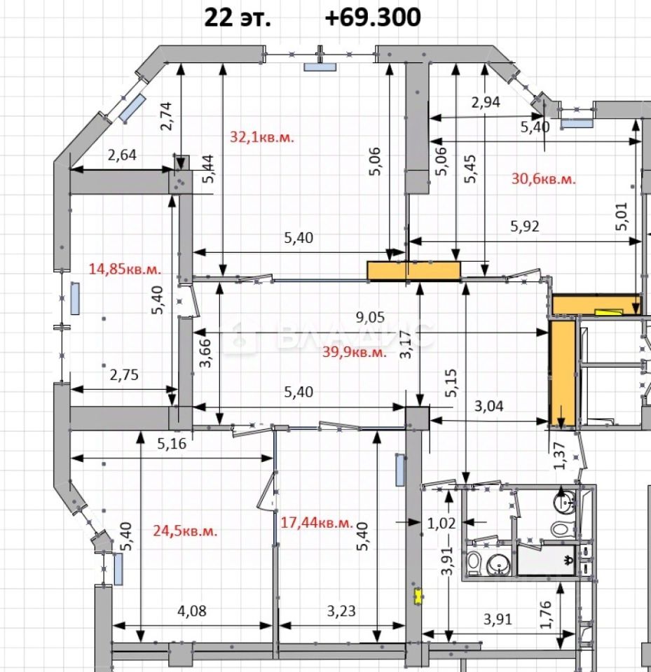 26 м² · 922 ₽ за м²