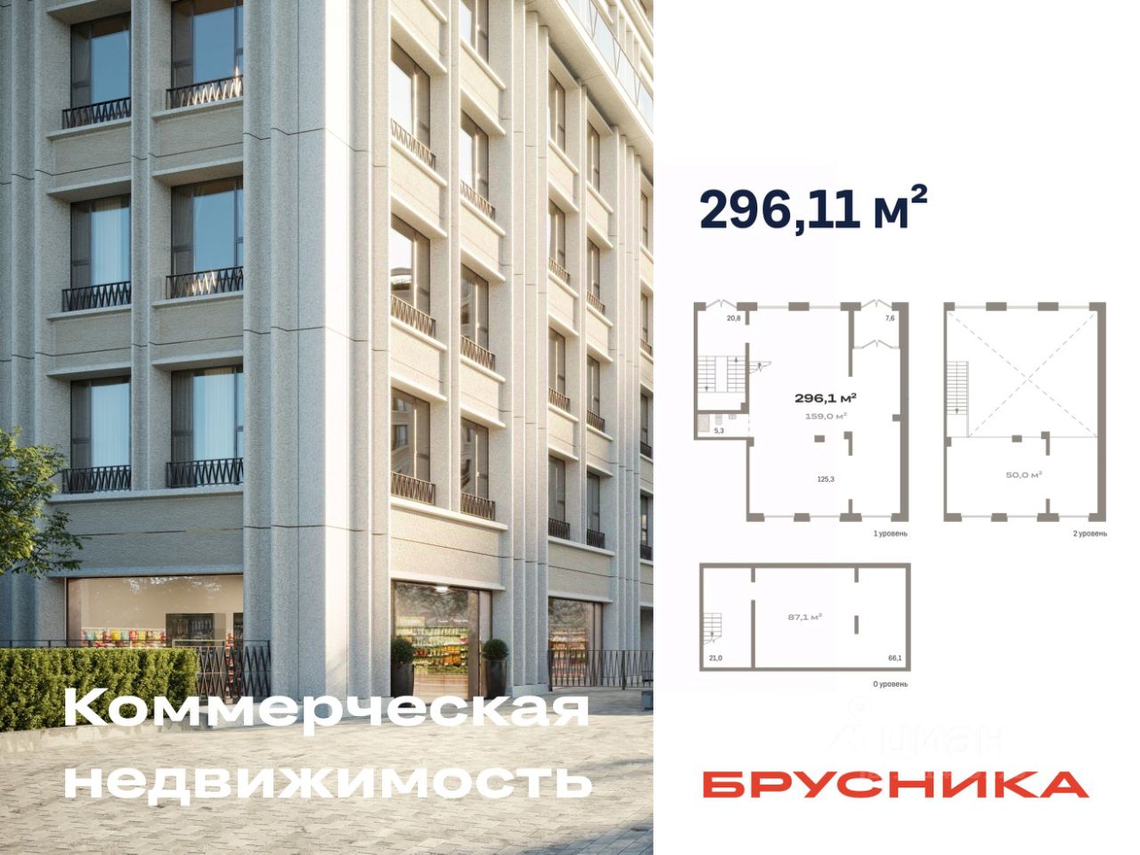 Помещение свободного назначения на 2 этаже, общая площадь 296.11 кв.м., без отделки. Стоимость помещения 62,000,000 руб., цена за кв.м 209,381 руб.