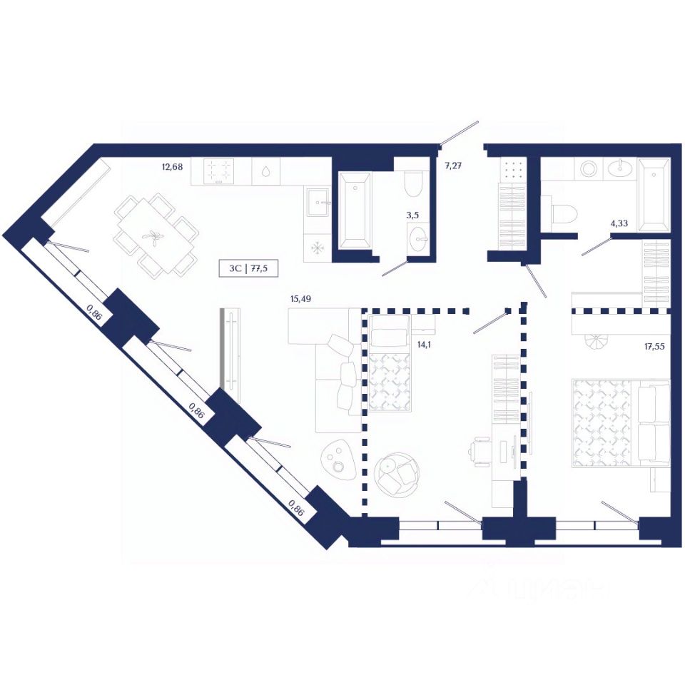 Общая площадь77,5 м2