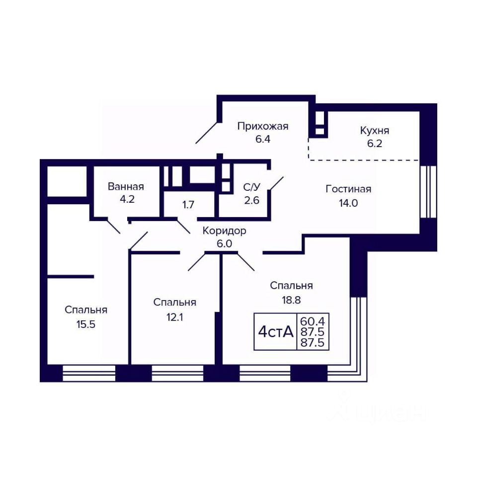 Общая площадь87,5 м2