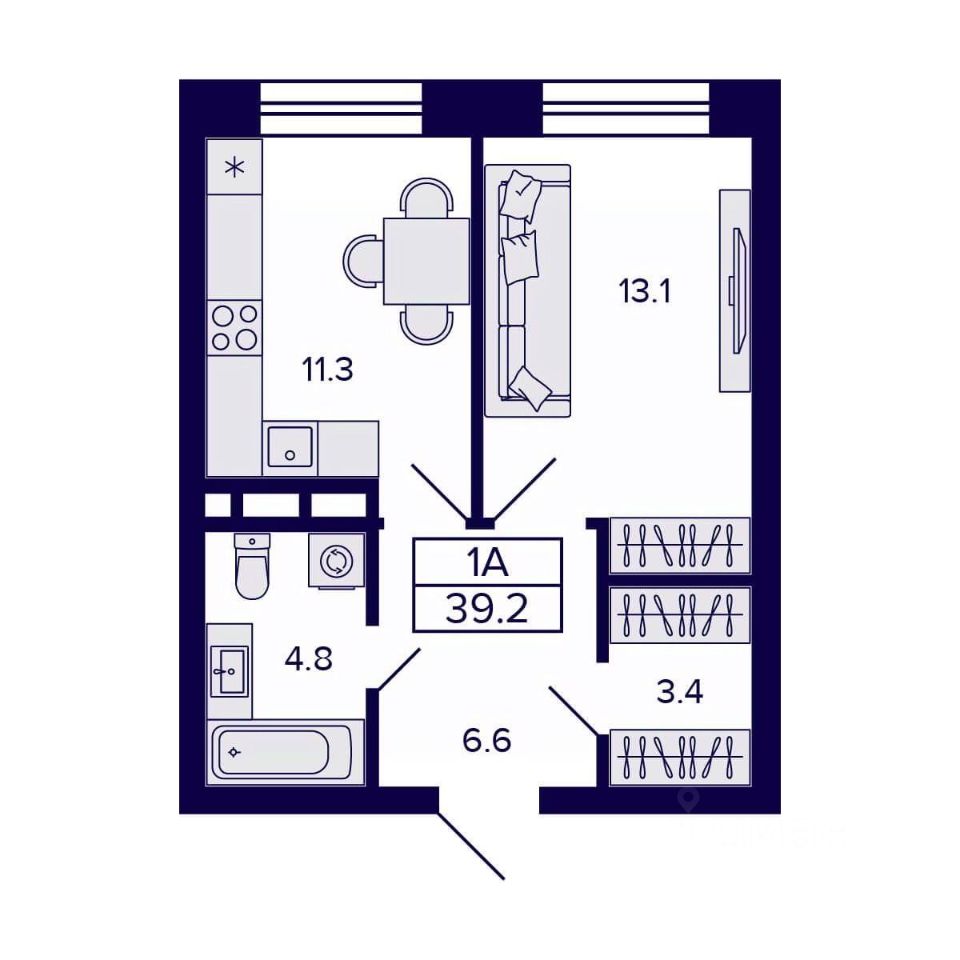 Общая площадь39,2 м2