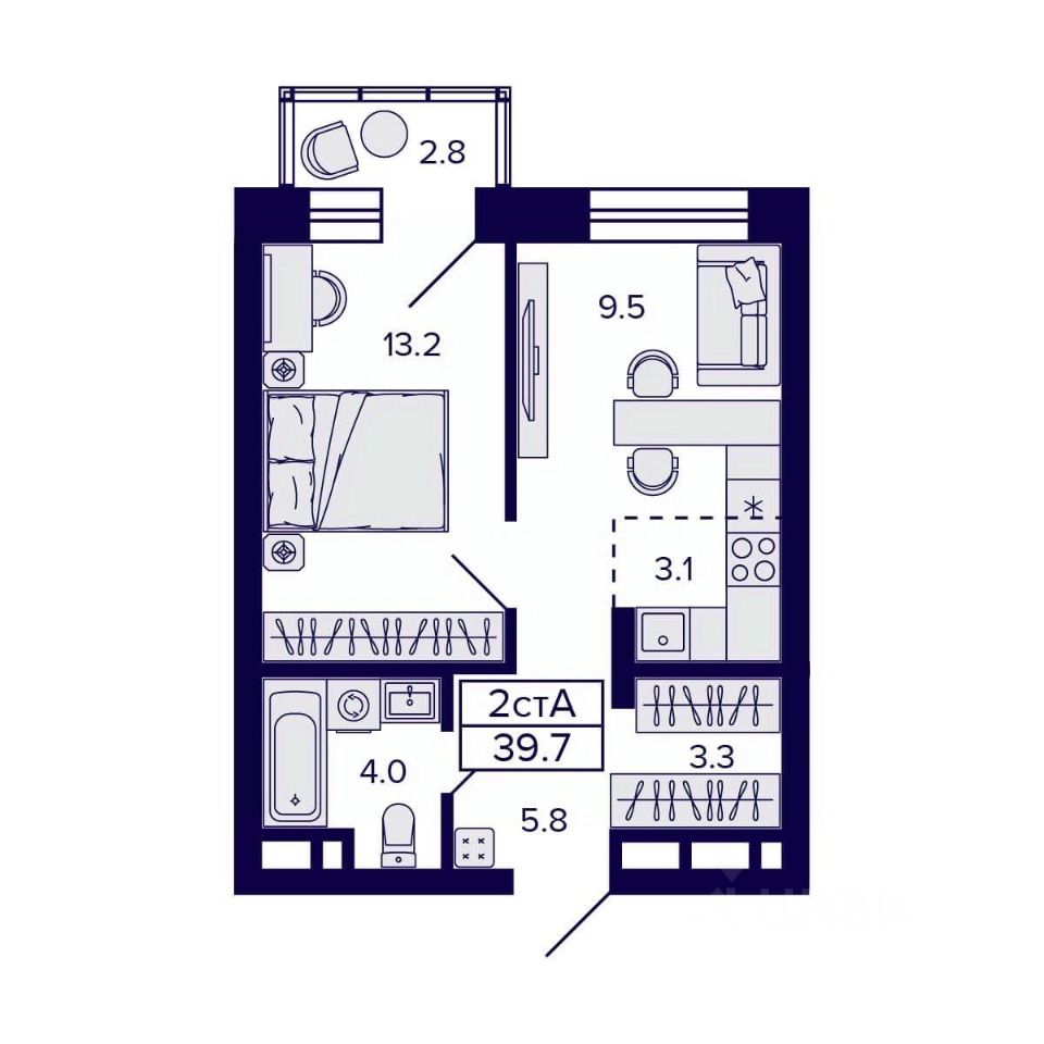 Общая площадь39,7 м2