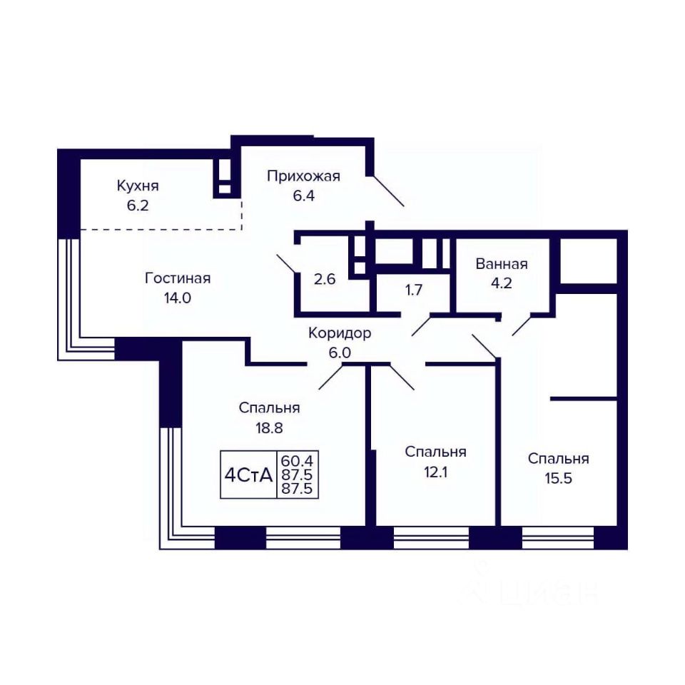 Общая площадь87,5 м2