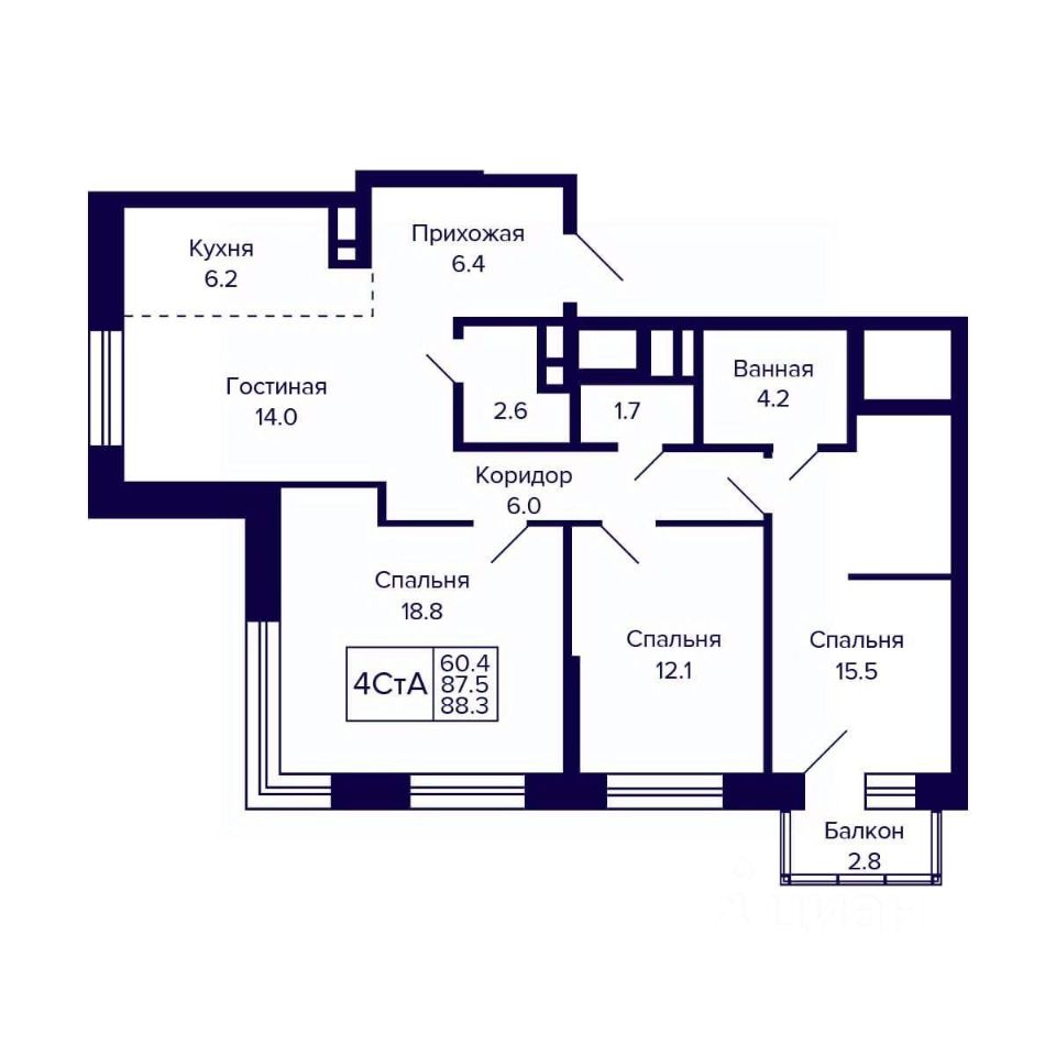 Общая площадь88,3 м2
