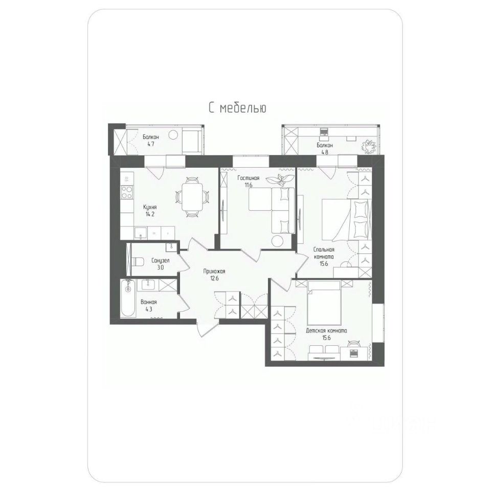 продам 3-к, Серафимовича, 12 корп. 2 стр.14 640 000 ₽