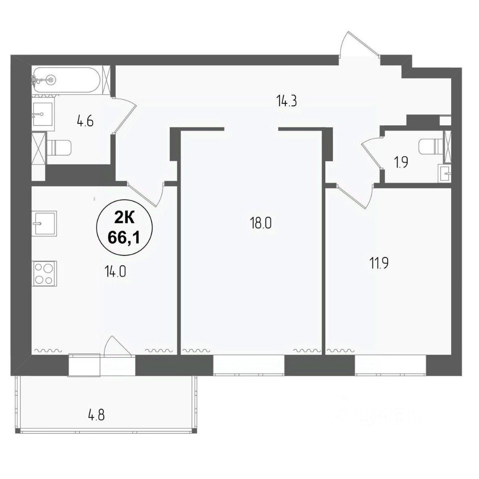 продам 2-к, Серафимовича, 12 корп. 2 стр.12 676 550 ₽
