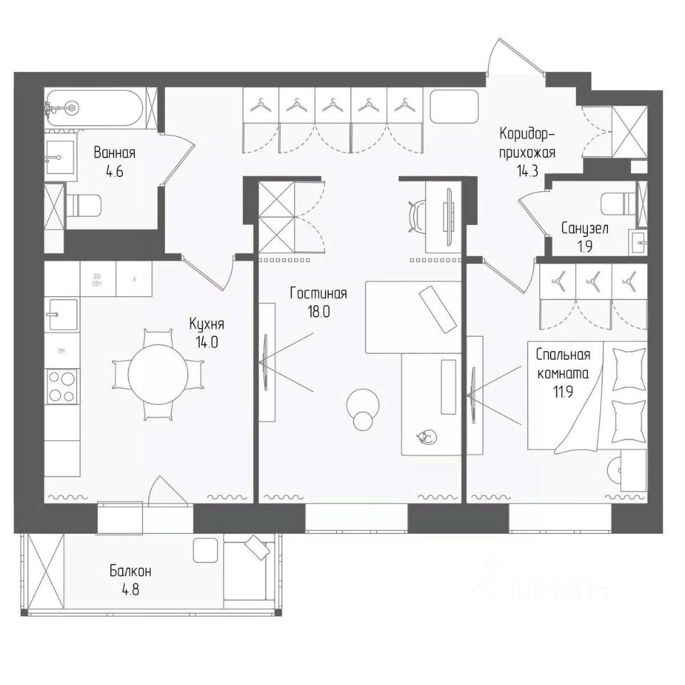продам 2-к, Серафимовича, 12 корп. 2 стр.12 676 550 ₽