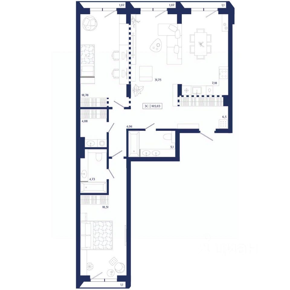 Общая площадь105,03 м2