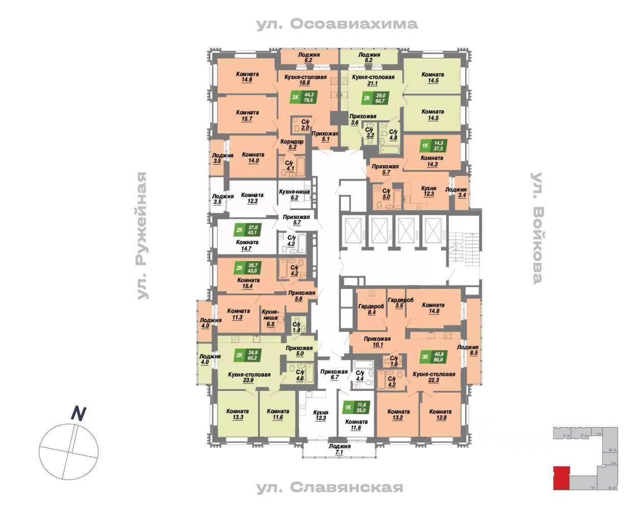 Общая площадь60,7 м2