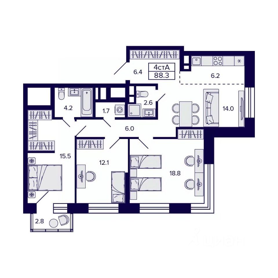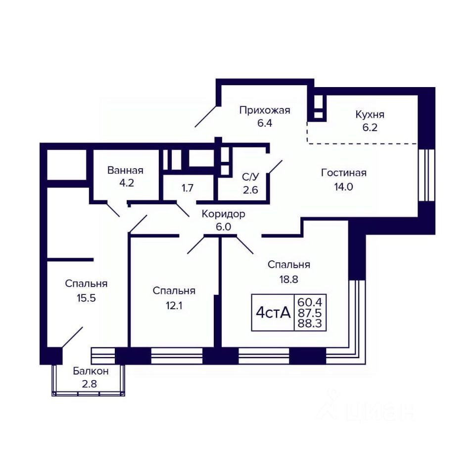 Общая площадь88,3 м2