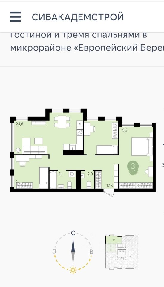 Риэлторов без реальных покупателей не беспокоить! В продаже от собственника просторная, светлая, видовая трехкомнатная квартира в одном из самых живописных и комфортных микрорайонов города. Дом находится в самом сердце микрорайона, рядом 2 новых детских садика (на один детский сад выходят окна спальни и детской), новая уникальная школа 220 (дом входит в микроучасток). Рядом с домом многоуровневый теплый паркинг, который находится в современном ТЦ ''Скала''. В доме функционирует совет дома, благодаря чему дом постоянно модернизируется. На территории новая детская площадка, современное озеленение. Квартира расположена на 16 этаже 25 этажного дома. Три спальни, большая кухня-гостиная для уютных вечеров и веселых праздников вашей семьи, из которой открывается великолепный вид на реку Обь. Поскольку окна выходят на запад, то вы можете каждый вечер наслаждаться потрясающими закатами, а в ночное время любоваться видом на ночной город и новую ледовую арену . Также в квартире имеется большой и вместительный гардероб, раздельный сан узел. В квартире выполнен качественный ремонт с использованием европейских материалов. Подоконники изготовлены из искусственного импортного камня. При ремонте полностью заменена проводка от застройщика на гостовские провода (фото процесса ремонта имеются), использовались трубы фирмы Uponor, фитинги и шаровые краны итальянской фирмы Bugatti. Вся мебель кухни-гостиной дизайнерская и выполнена на заказ. Диван и стулья обеденной зоны выполнены в одном стиле из массива и итальянской антивандальной ткани, современная прошивка спинок выполнена в ручную. Обеденный стол- массив (карагач) с инсталляцией из эпоксидной смолы ''Бирюзовая Катунь''. Кухонный гарнитур изготовлен на заказ с использованием финских фасадов, оригинальной фурнитуры Blum, акриловой столешницей и интегрированной мойкой Corian. Встроенная бытовая техника Итальянского бренда Kuppersberg и вытяжка Elica остаются новым хозяевам. В спальне установлен спальный гарнитур, выполненный на заказ вручную из натуральной итальянской кожи, с подъемным механизмом, что обеспечивает дополнительное место хранения. В сан узлах установлена дорогая сантехника фирм Geberit, Roca, Hansgrohe. Раковина в ванной и мебель в обоих сан. узлах выполнена на заказ. Под ванной установлена продуманная система хранения. Аксессуары чешской фирмы Аlca. Большой водонагреватель на 80 литров, не оставит вас без горячей воды, во время профилактических работ. В детской комнате установлена мебель IKEA. Во второй гостевой комнате абсолютно новый диван. Комната не использовалась по назначению. Приобретая данную квартиру, вы приобретаете не только квадратные метры, но и инфраструктуру, качество и комфорт. Шикарные виды из окна от рассвета и до заката в любое время года, а главное отсутствие эффекта '' Окна в окна'', шума и пыли от улицы Большевистской. Сделка без занижения, чистая продажа без обременений . Один взрослый собственник. Заходи и живи! Возможна продажа без мягкой мебели, цена обговаривается.