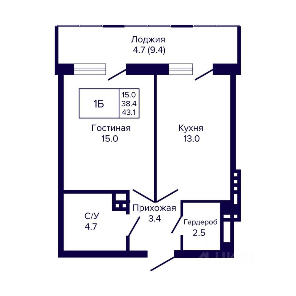 Общая площадь43,1 м2