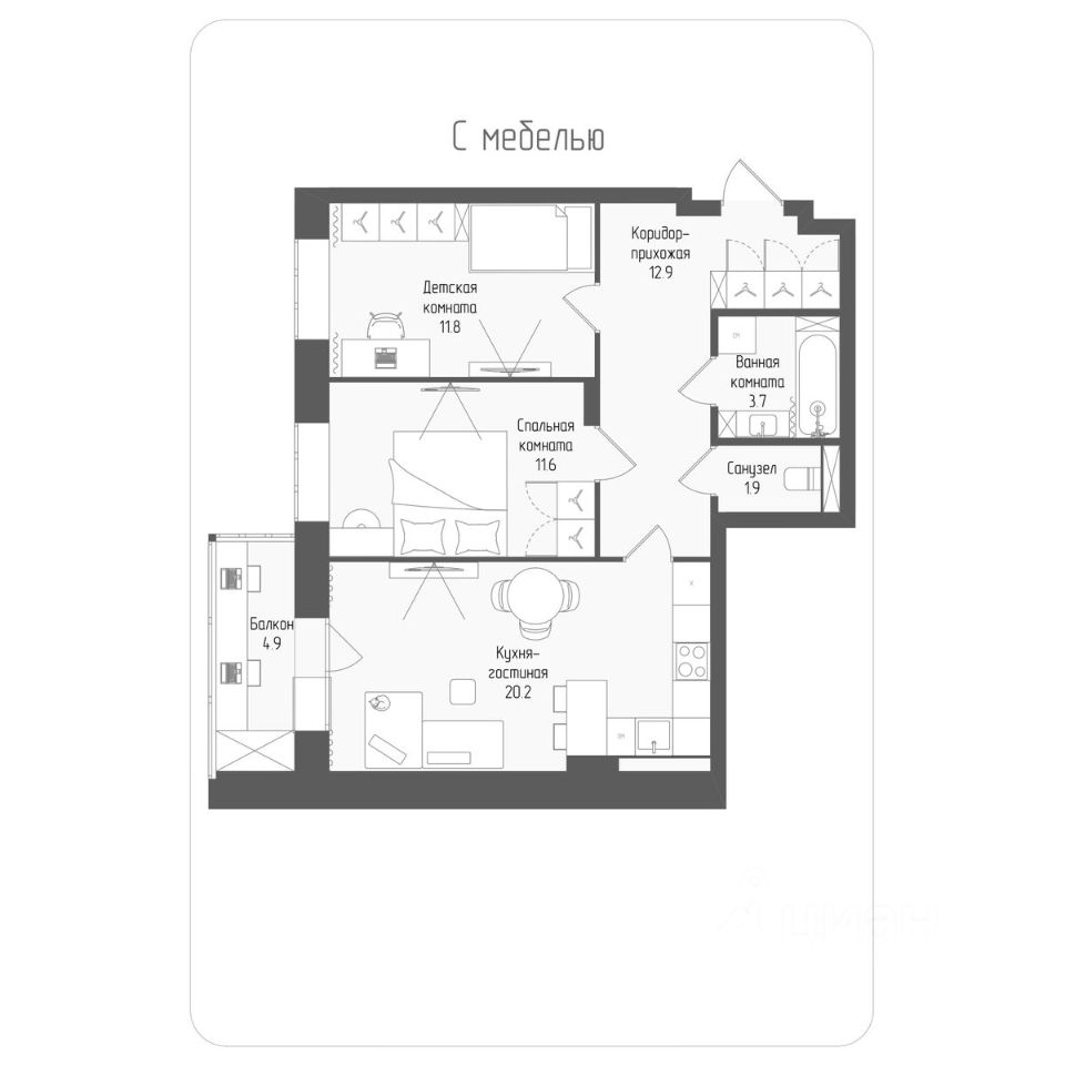 продам 3-к, Серафимовича, 12 корп. 2 стр.11 205 950 ₽