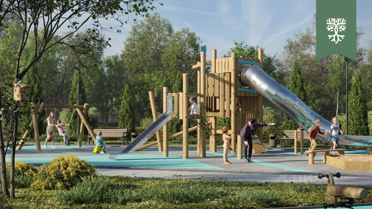 функциональная спортивная площадка, детский игровой городок из экологически чистых материалов, широкая прогулочная аллея в центре, асфальтированные дороги, к участкам подведено электричество.