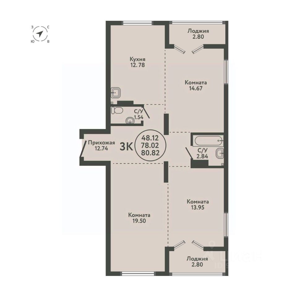 Общая площадь80,82 м2