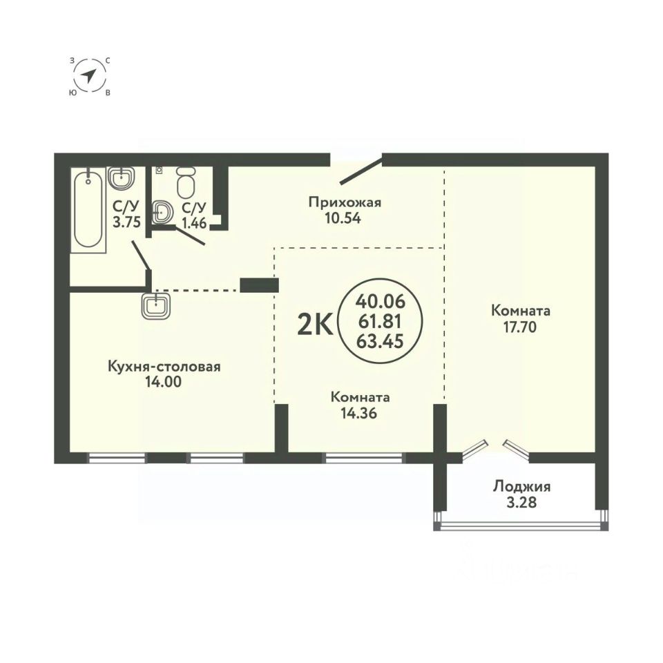 Общая площадь63,45 м2