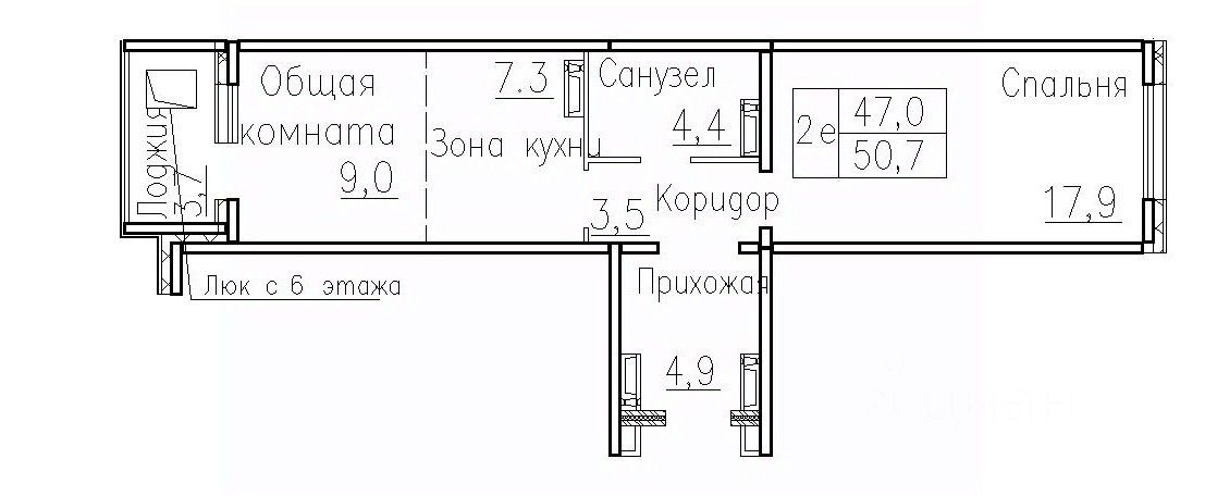 Общая площадь50,7 м2