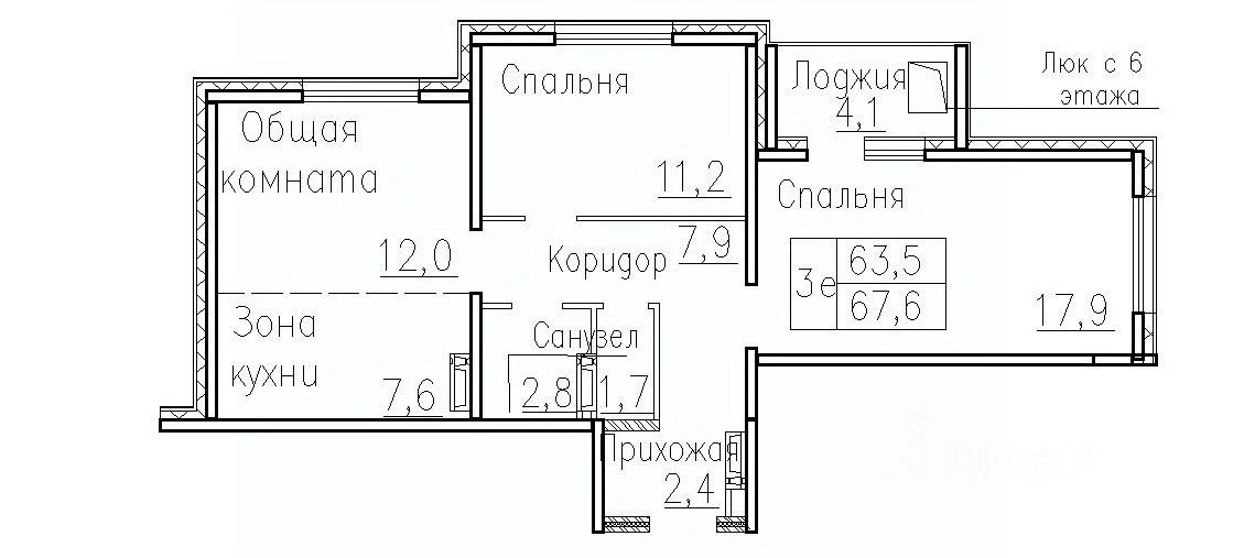 Общая площадь69,4 м2