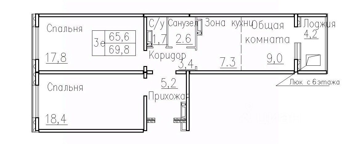 Общая площадь69,8 м2